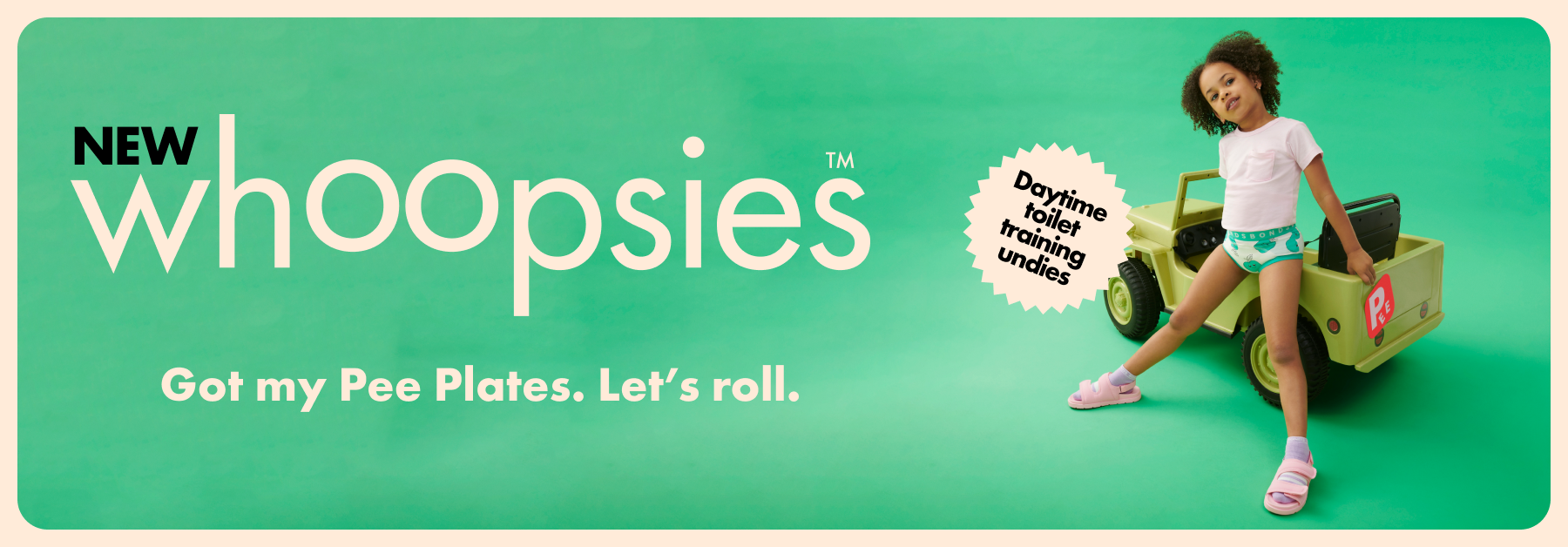 Introducing the Bonds Whoopsies, toilet training pants helping your little ones transition from nappies to regular underwear. Wee accidents are contained in these potty training pants by the built in double-layer absorbency pads and gussets to keep leaks inside. Whoopsies daytime toilet training undies are easy to put on and take off, for those rushed need-to-go-now moments! Reusable and easy to care for, our new Bonds toilet training underwear is the kid-friendly essential for parents' pee-ce of mind.